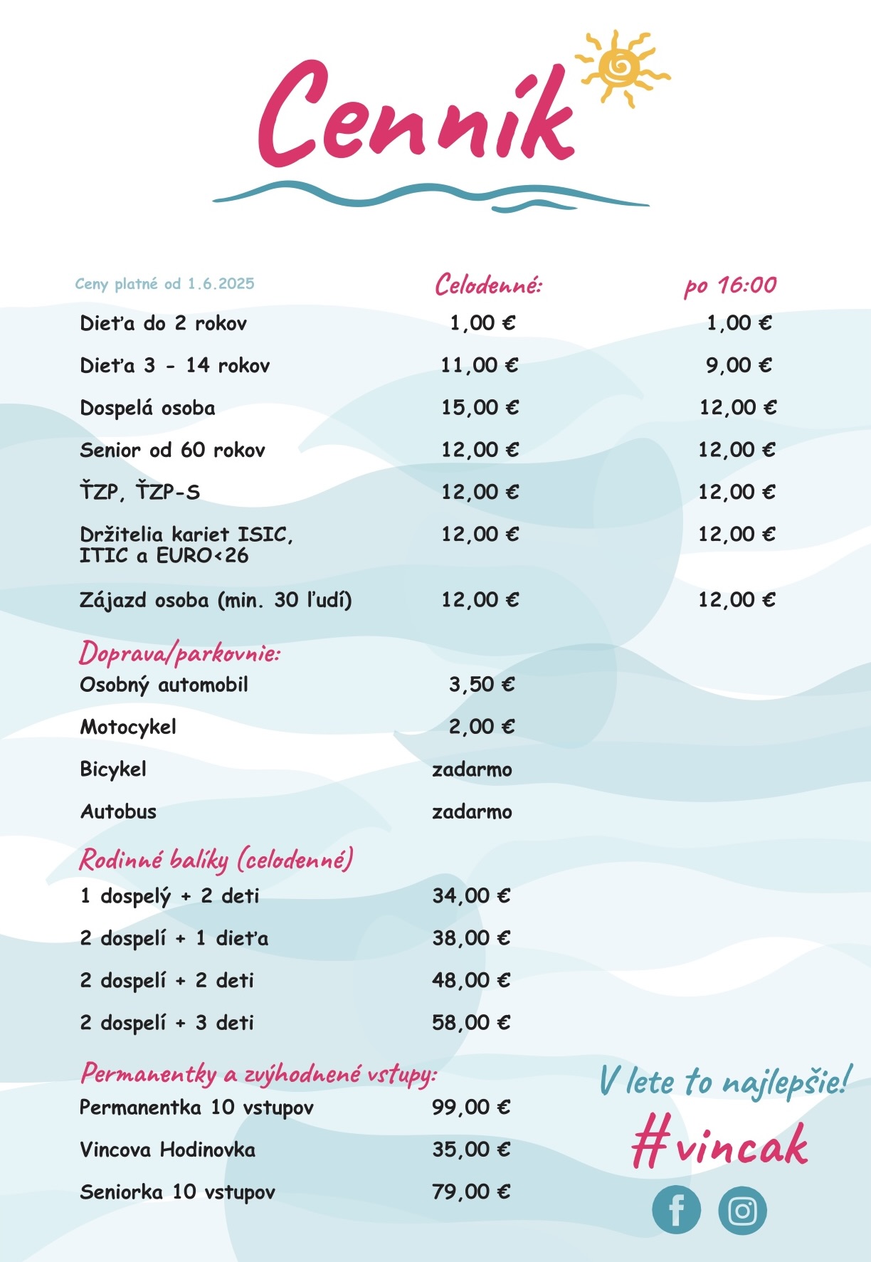 Termálne kúpalisko Vincov les –  cenník